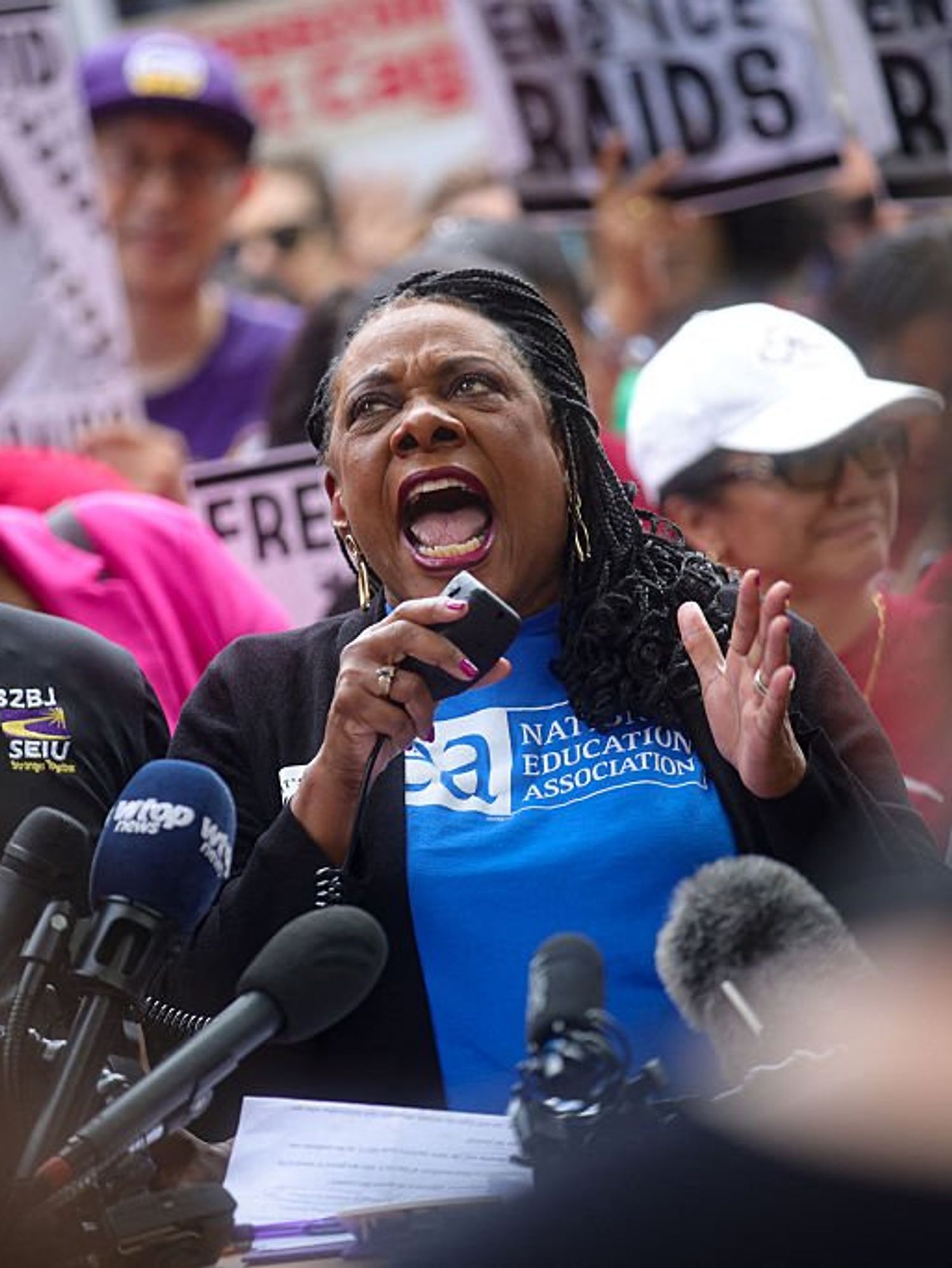 "NEA opposes Immigration and Customs Enforcement (ICE) kidnapping of student leaders and supports students' right to organize against ICE raids and deportations," says business item 63, among those apparently adopted at the convention. "We will protect our students' right to free speech and defend their right to dissent and organize against Trump's policies, including attacks against LGBTQ+ students, and against racism."