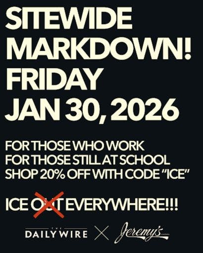 Stop giving your money to companies that hate ICE and love chaos. Enjoy 20% off at Jeremy’s instead.