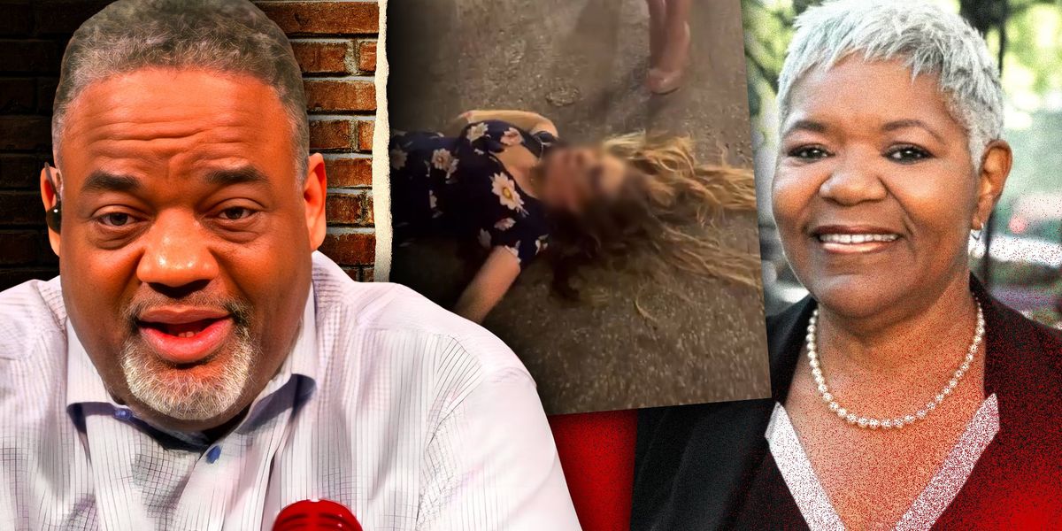 “In her mind, the whole story justifies the beatdown of the man and the woman,” says BlazeTV host Jason Whitlock, who displays grisly images of the female victim following the attack. One of her eyes is a deep purple color and completely swollen shut, while her lips are puffy and bruised. The rest of her face is a sickly greenish yellow from severe bruising.