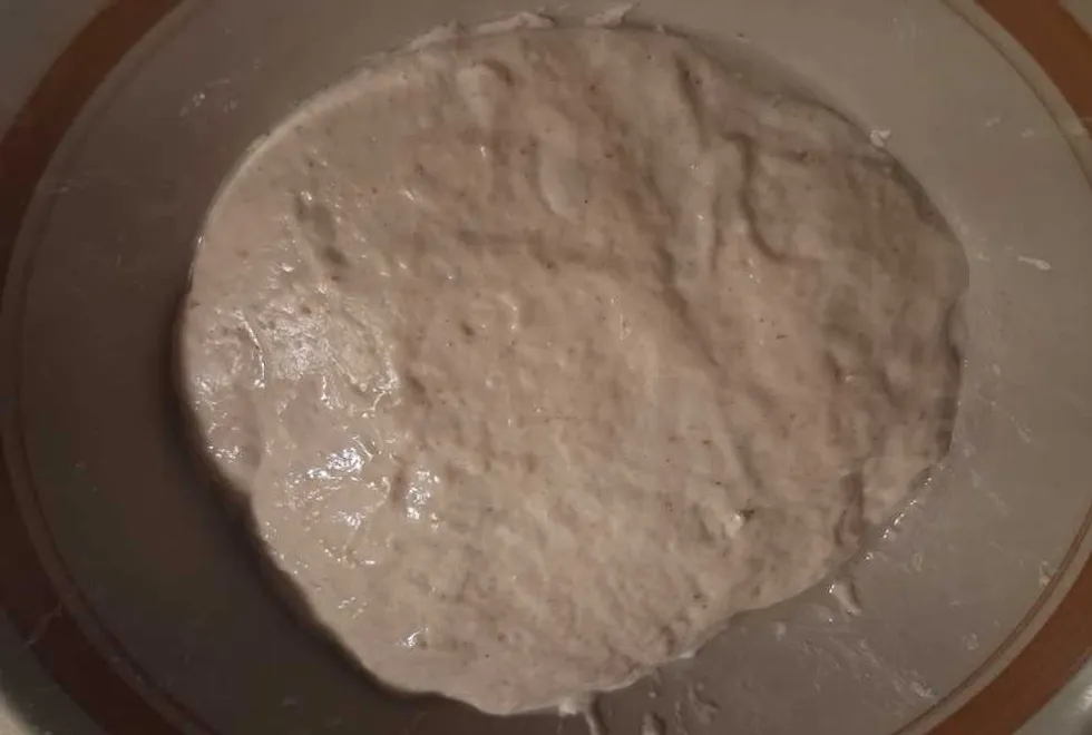 I put some flour in a bowl. Then I put some water in. Then I stirred it. Then I set it on the counter under a towel. Every day, I dumped half out and added back water and flour to give the nascent yeast new starch to grow on.