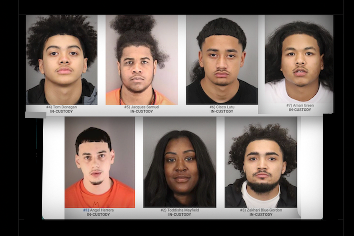 However, detectives soon identified seven suspects: Angel Herrera, 21; Toddisha Mayfield, 31; Zakhari Blue-Gordon, 23; Tom Donegan, 19; Jacques Samuel, 18; Cisco Lutu, 18; and Amari Green, 21, police said.