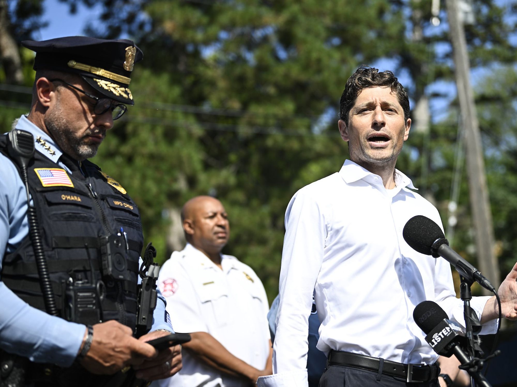"I have heard about a whole lot of hate that's being directed at our trans community," Frey said, with law enforcement officials standing behind him.