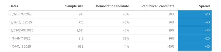 These are projections that, if they hold up, foreclose the possibility of a “Blue Wave” election for Democrats. Meanwhile, just the other day, in a special election in the Alabama state house, Republican Norman Crow won by a margin of 29 points. Trump, for comparison, won the district by 18 points in 2024. The usual caveats apply — it was a special election with low turnout in a safe district — but it’s the kind of election that still demonstrates enthusiasm for the Republican Party and the direction the Trump administration is taking it.