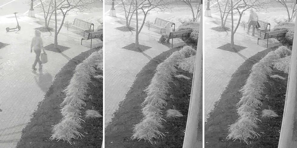 The suspected pipe bomber moves to a bench behind the Democratic National Committee building in Washington, D.C., on Jan. 5, 2021. FBI