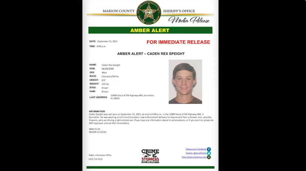 An Amber Alert was issued on the night of Sept. 25 stating that Speight was last seen about four hours earlier in the 12800 block of SW Highway 484 in Dunnellon, which is about an hour south of Gainesville.