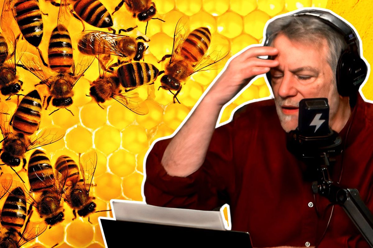 “They also have a ‘Frankenbee,’ like Frankenstein bee, where the bee is Monsanto-produced, and it can live in a glyphosate, aluminum, like, toxic pesticide/herbicide environment where all the other insects are dying,” he says.