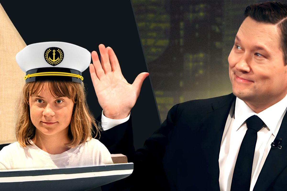 BlazeTV host Stu Burguiere can’t help but laugh at “Greta’s big boat adventure.”