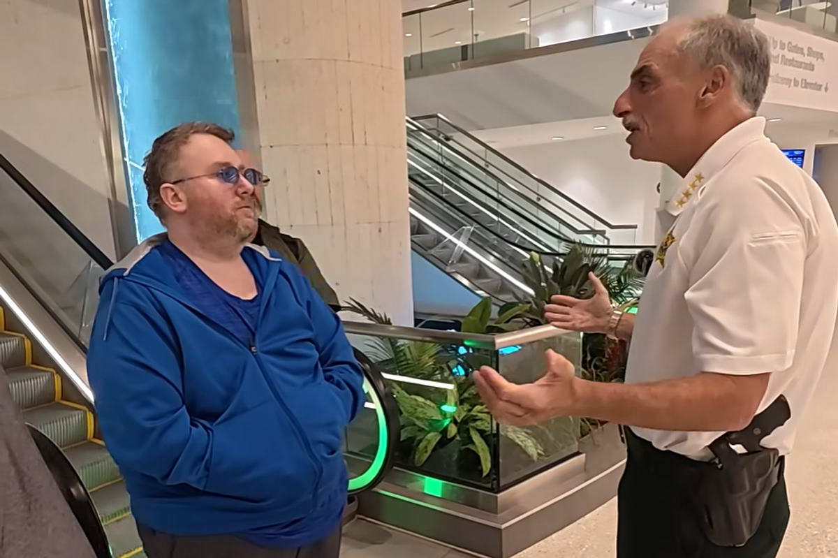Viral video shows Volusia Sheriff Mike Chitwood speaking face-to-face with 45-year-old Matthew Moulton at the Daytona Beach International Airport.