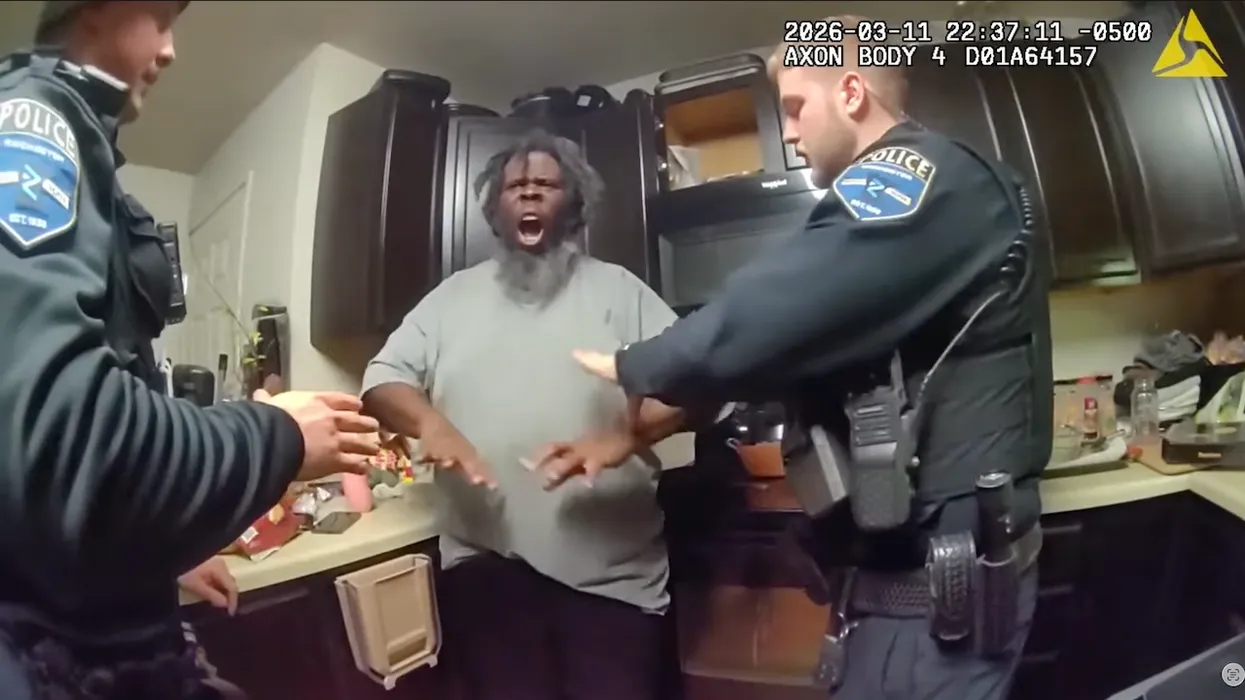 Police bodycam video of the incident — which can be viewed here — recorded the moment when the officer shouted, "He's grabbing my gun!"