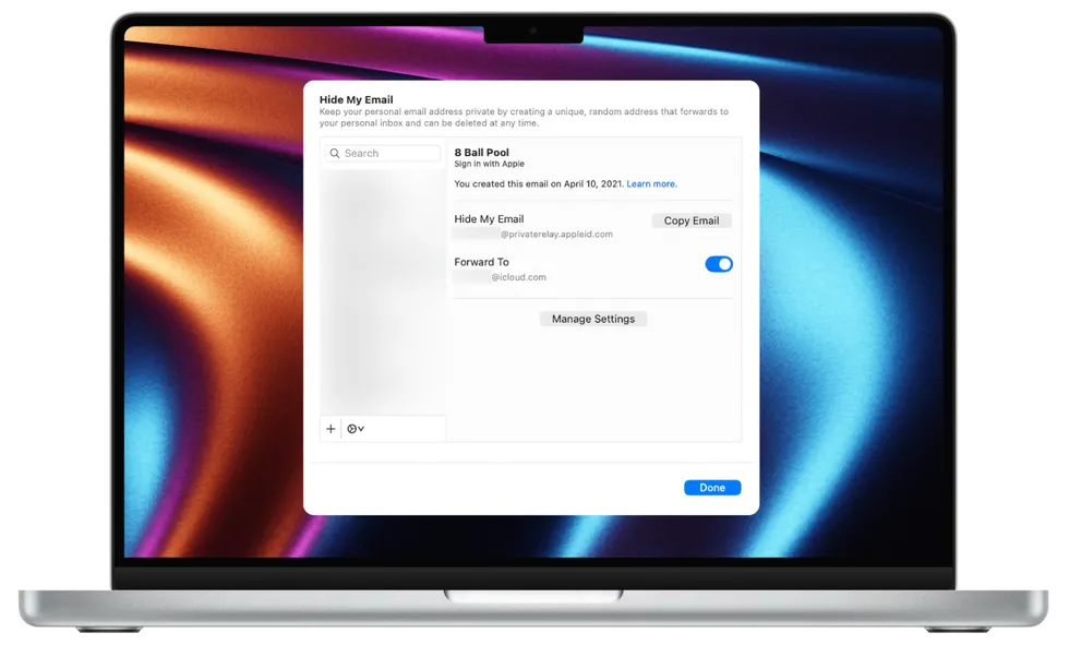If you pay for more iCloud storage outside of your free 5GB plan, you also have access to “Hide My Email.” As the name implies, this feature lets you create anonymous email addresses — known as aliases — that all forward emails back to your main iCloud account without revealing your real Apple ID or name to the receiver.