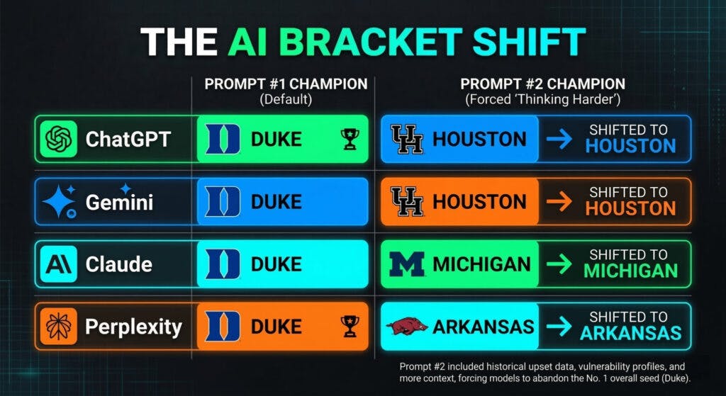 We Asked 4 AI Models To Do March Madness. They Picked The Same Team — Then We Made Them Think Harder